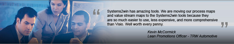 Your Systems2win value stream mapping template provides a special shape that makes it extremely easy to draw a box around segment of a value stream map.